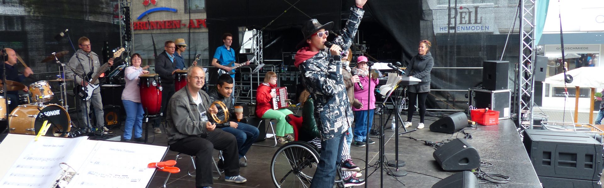 Die Topfits sind musikalisch topfit wie der Name schon sagt. Zum Musizieren kommen junge Erwachsene zusammen, Menschen mit und ohne Behinderungen.