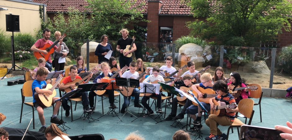 Das Orchester stellt ein Zusatzangebot für motivierte Gitarren- und Mandolinenschüler*innen dar, die ergänzend zum Instrumentalunterricht das gemeinsame Musizieren in einer Gruppe ausbauen möchten. Gespielt wird ein breitgefächertes Programm von Originalliteratur und eigens arrangierten Stücken, angepasst an das Niveau und die Fähigkeiten der jungen Musiker.