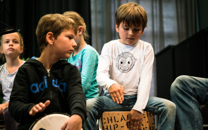 Im Grundschulprogramm JeKits und JeKi-Bochum werden als Schlaginstrumente Cajon und Djembe angeboten.