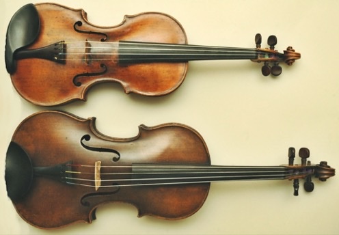Das Foto zeigt den Größenunterschied zwischen Geige und Bratsche