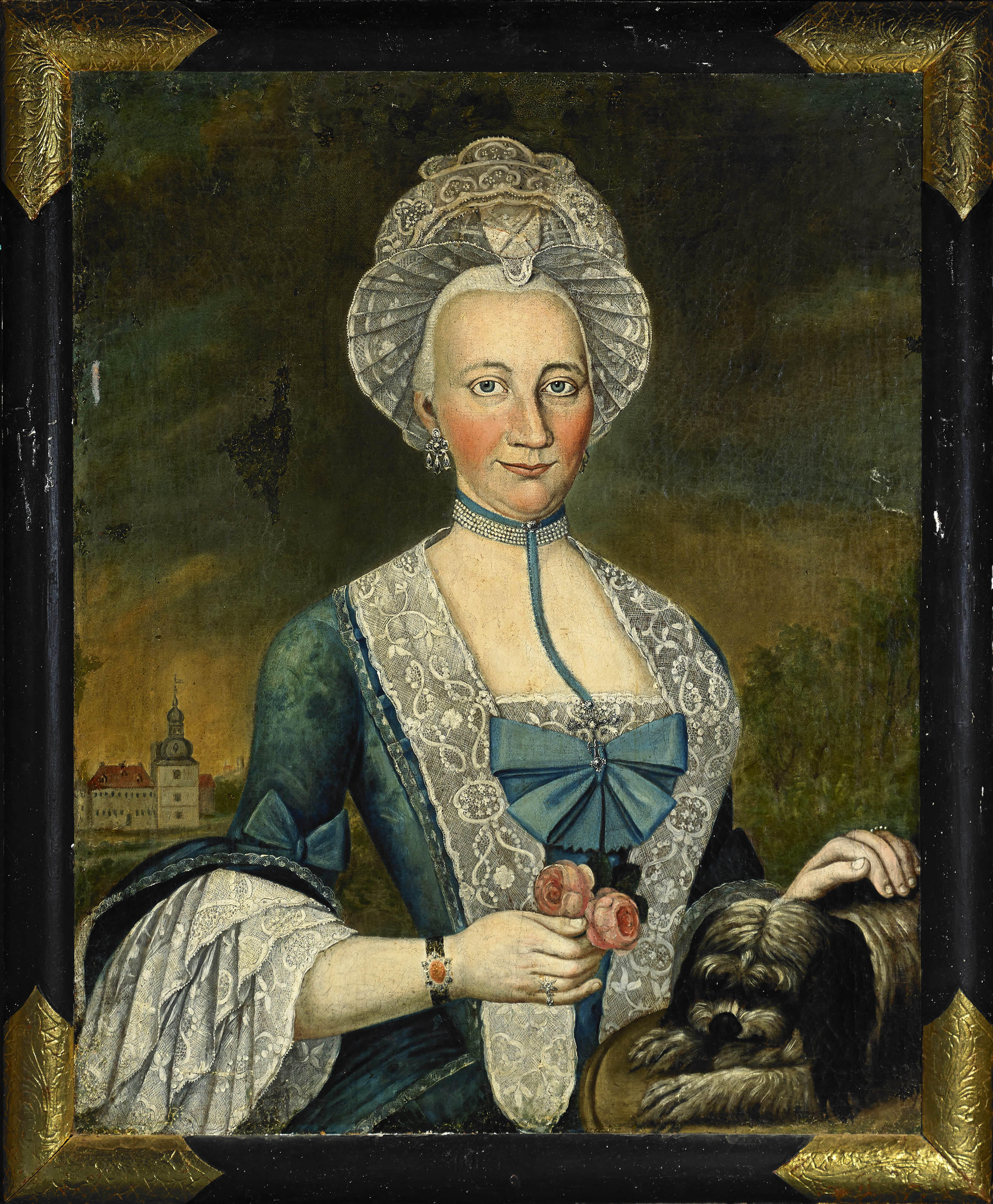 Die Bildnisse sind Teil einer Serie des Malers J. E. Hauck aus dem Jahre 1773, zu der auch Porträts auf Haus Laer gehören. Vermutlich gehörte der Meister zu einer aus dem Frankfurter Raum stammenden Künstlerfamilie, deren Mitglieder damals in den Niederlanden tätig waren.