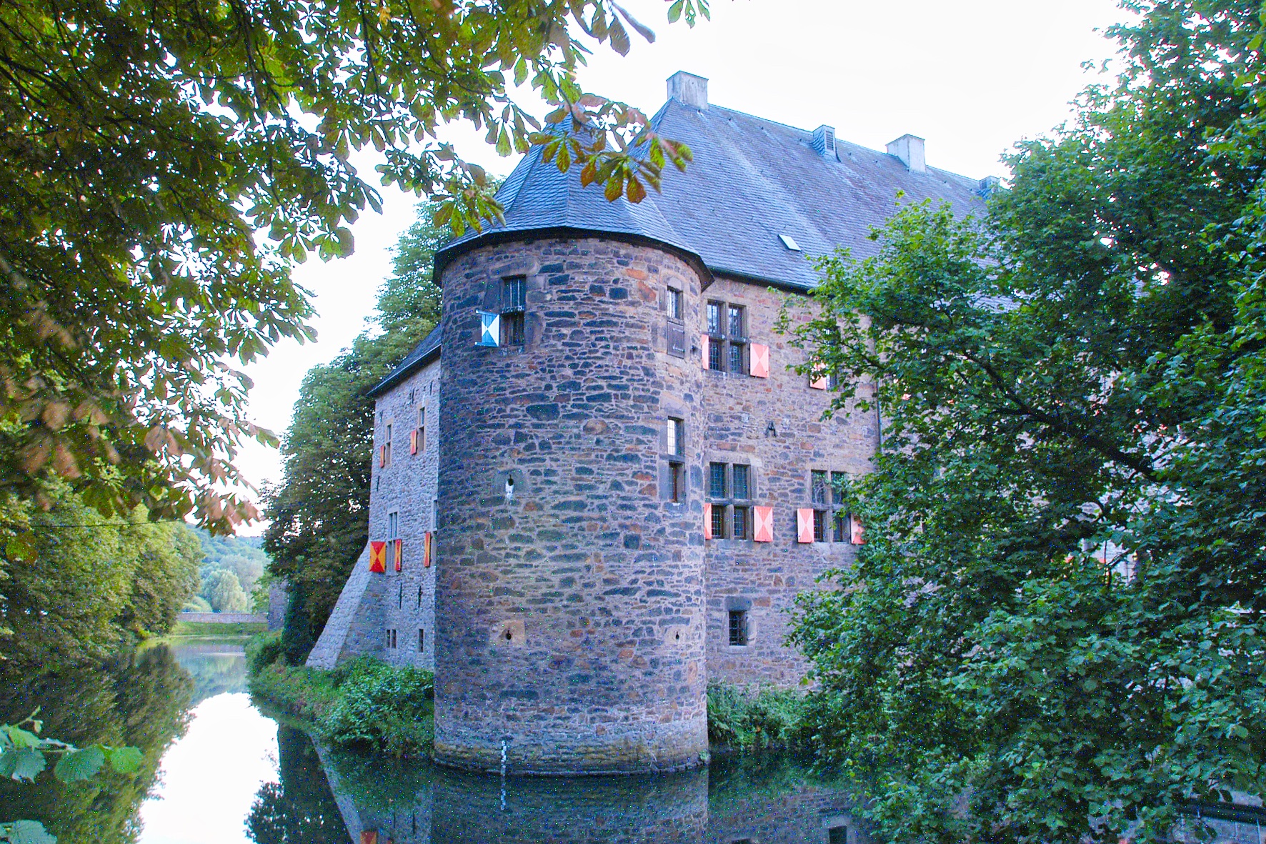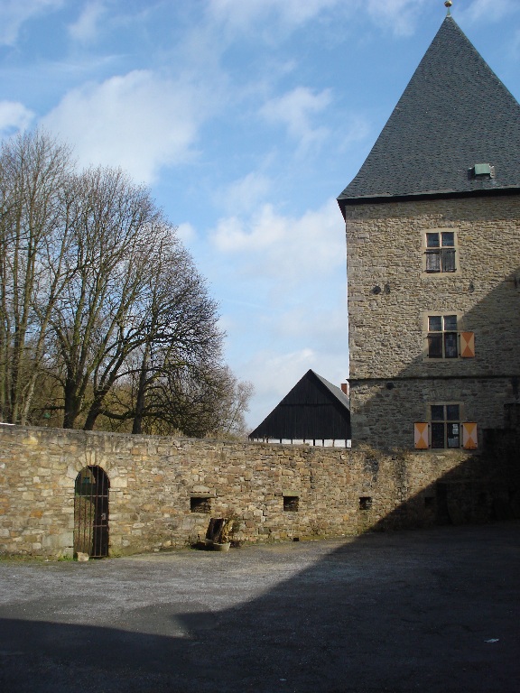 Zu dieser Zeit lag das Haus noch auf derselben Seite wie der Hof, erst durch ein Verlagerung der Ruhr 1486 geriet es auf die andere Ruhrseite. Das Haupthaus war vierseitig von einer Gräfte umgeben, davor dürften Wirtschaftsgebäude gelegen haben. Die heutigen Gebäude auf diesem Gelände sind zwischen 1780 und 1969 entstanden. 1589 brannte das Haupthaus ab, der Neubau zog sich von 1602 bis 1704 hin. In dieser Gestalt ist das Haus bis heute erhalten geblieben. Im fehdereichen 15. Jahrhundert könnte das Haus auch Verteidigungsfunktion gehabt haben, der Neubau hatte diese Funktion aber trotz des mächtigen Eckturms nicht mehr. - Der älteste erhalten gebliebene Teil des Hauses ist die Kapelle vom Anfang des 16. Jahrhunderts.